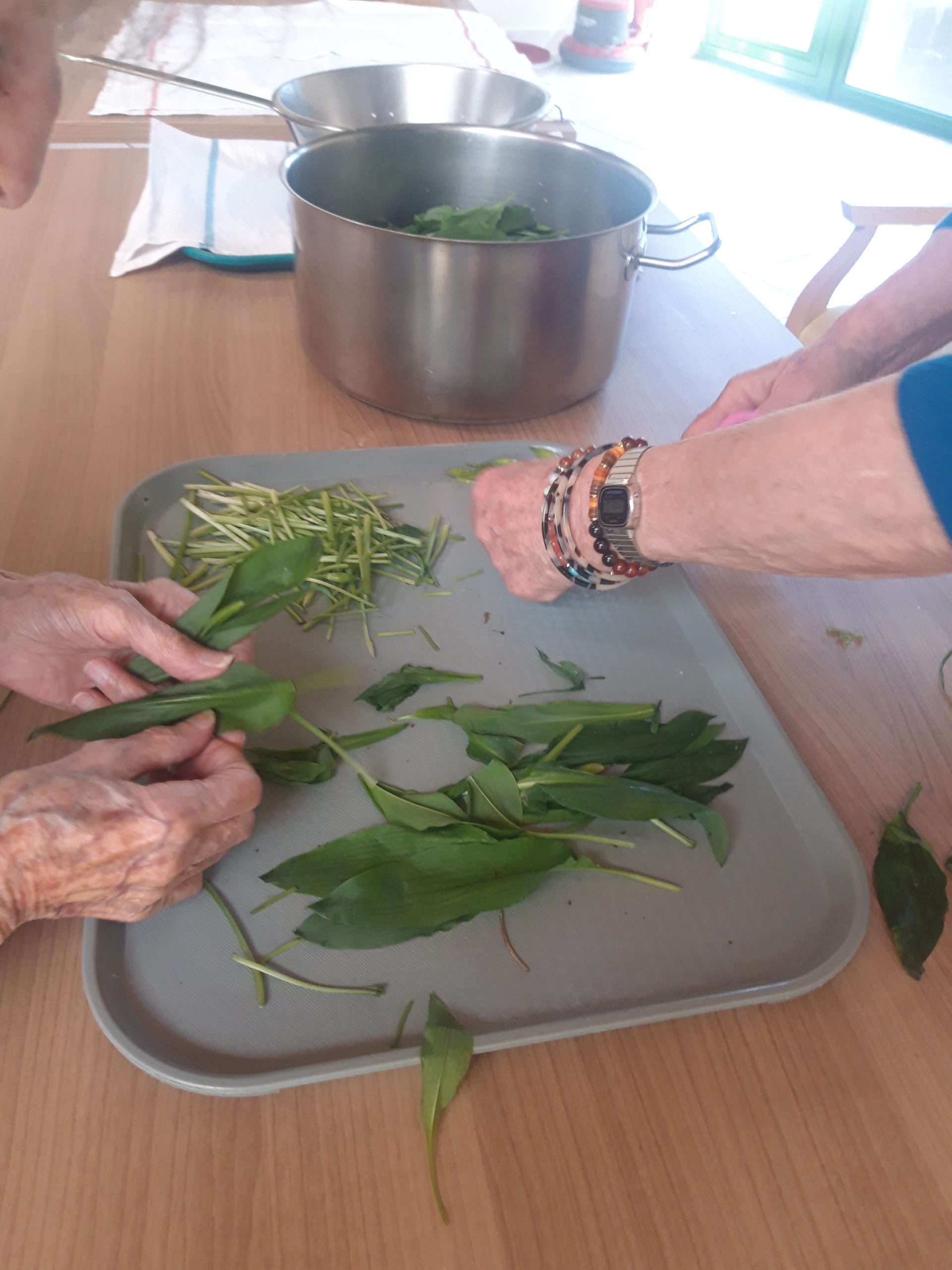 Aujourd’hui les résidents ont profité d’une petite dégustation de plantes sauvages  cueillies la veille: notre fameux ail des ours.