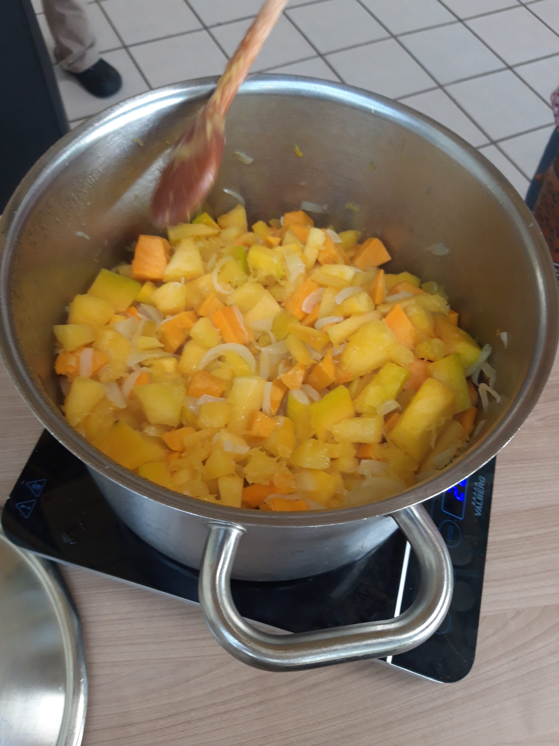 Elle s’expose dans l’établissement sous de nombreuses variétés, nous la dégusterons en soupe et en tarte sucrée ! Merci au jardin des pot’iront pour cette collaboration culinaire et pédagogique.