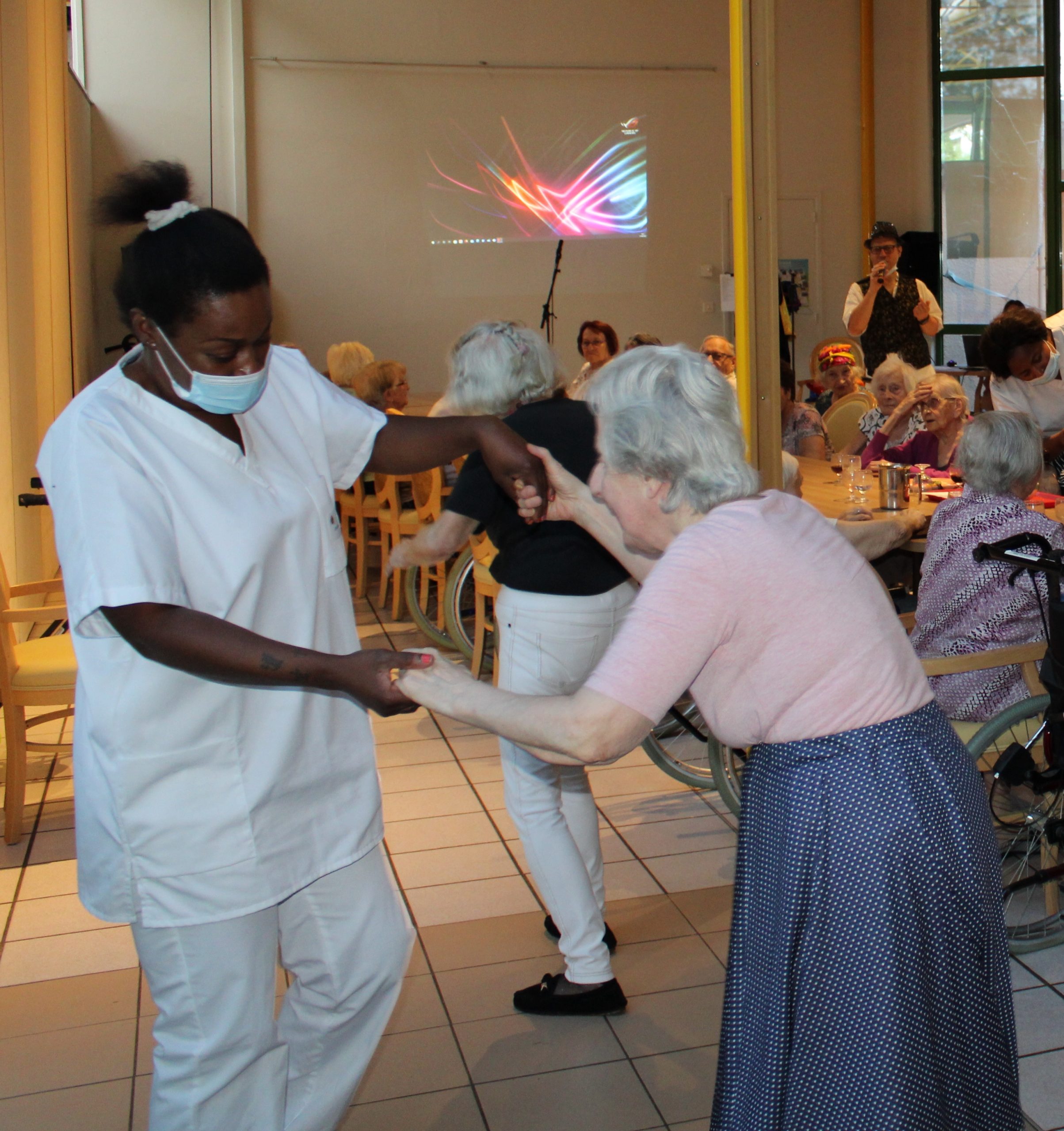 Pour marquer les 40 ans de la fête de la musique le gendre d’une de nos résidente a offert une soirée en chansons à l’ensemble de l’établissement. Pour l’occasion, les résidents de l’unité protégée ont diné en grande salle. De l’avis de tous c’est à refaire!