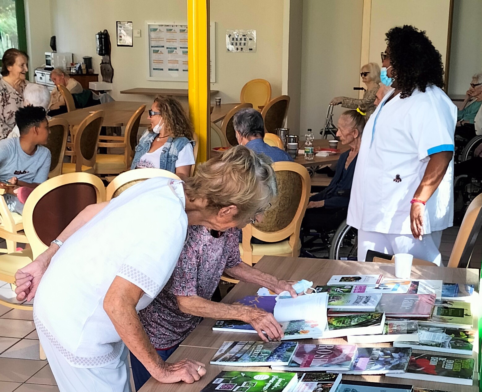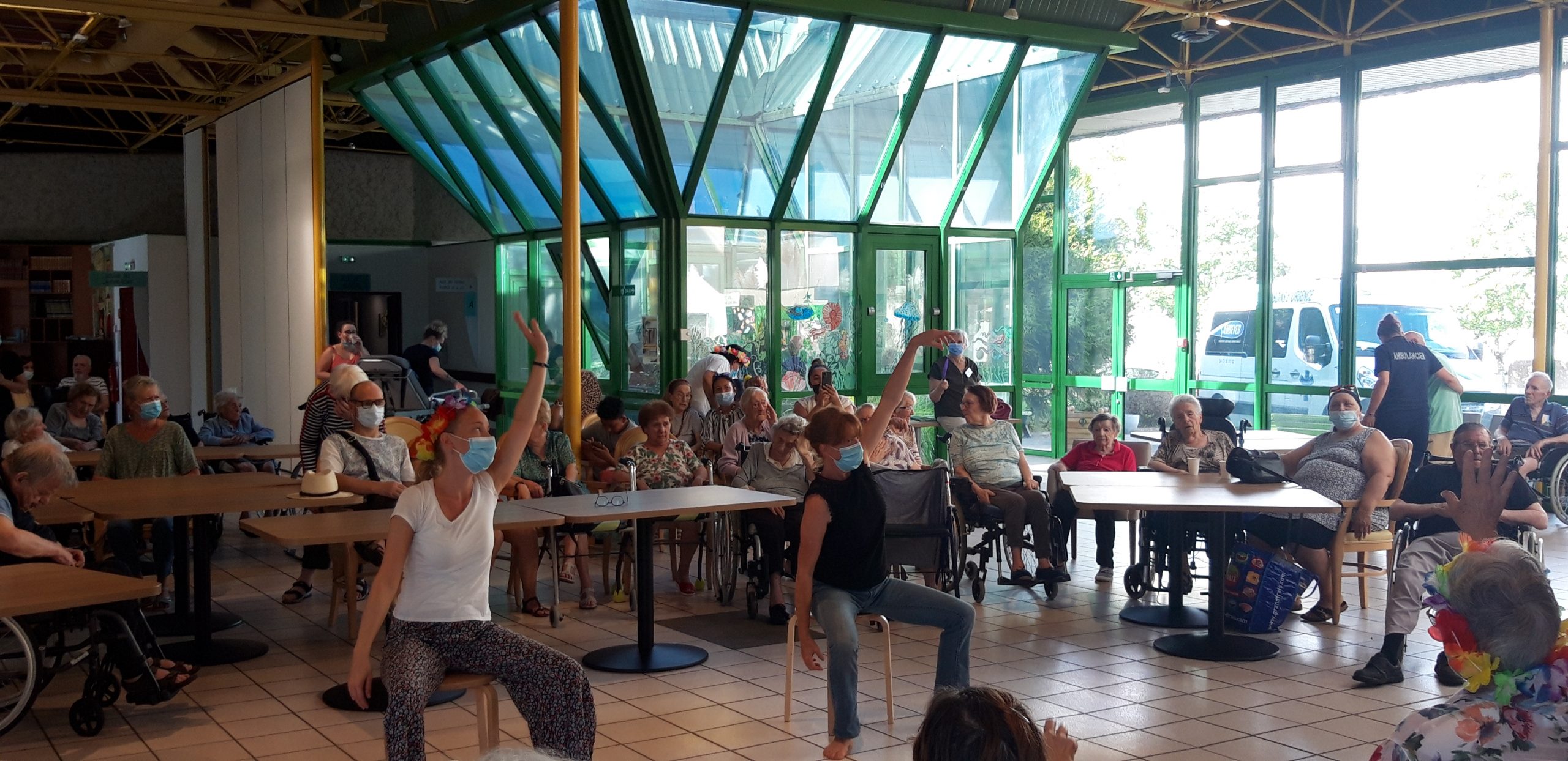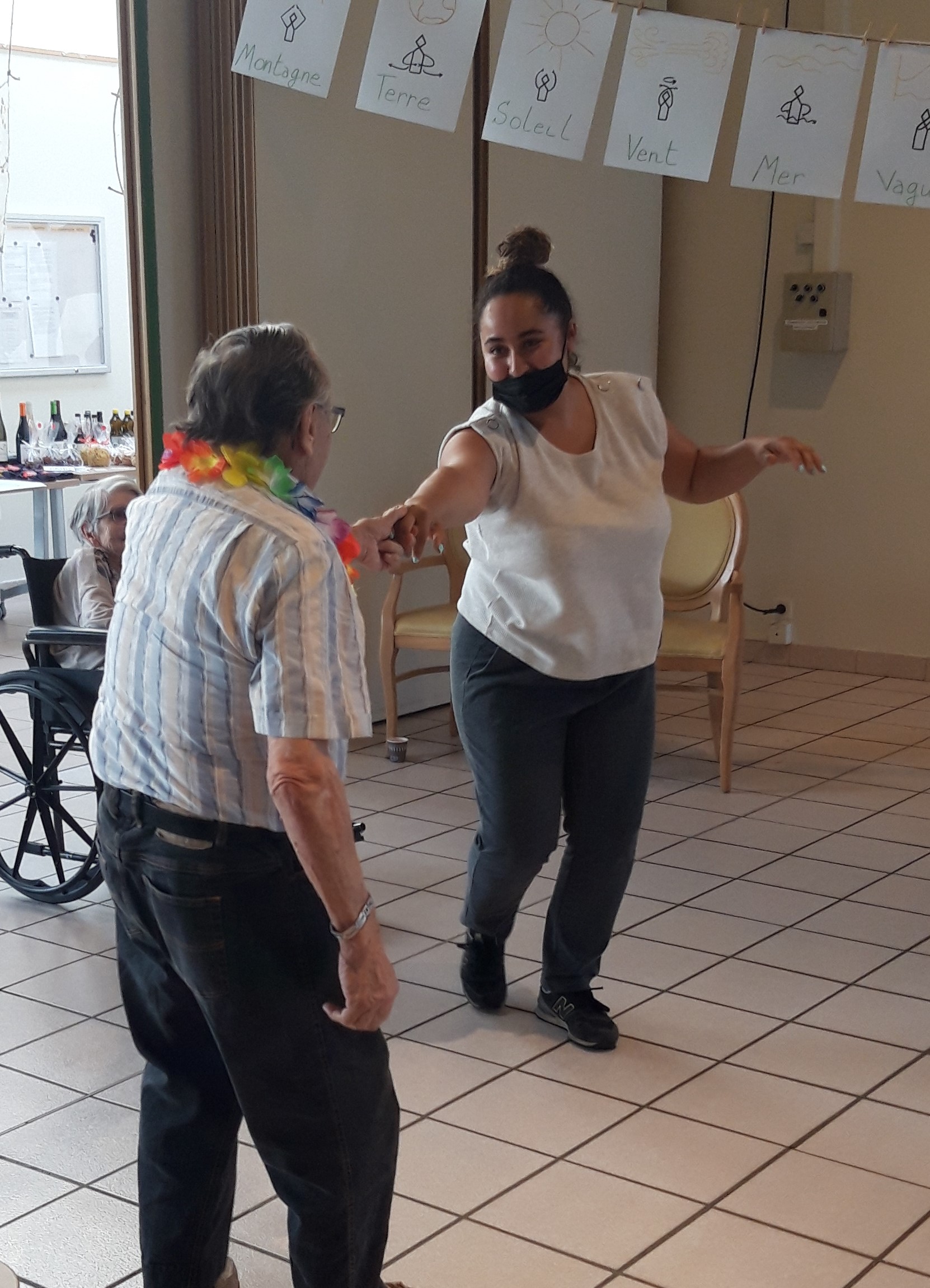 Pour clôturer le projet « l’art au jardin » lancé au début de l’été par le groupe ACPPA, toute l’équipe des Volubilis a proposé un après-midi festif aux résidents et leurs proches. Si le temps ne nous a malheureusement pas permis de nous installer dehors nous avons quand même dansé, dégusté, voyagé et partagé, le tout dans une ambiance chaleureuse et joyeuse!