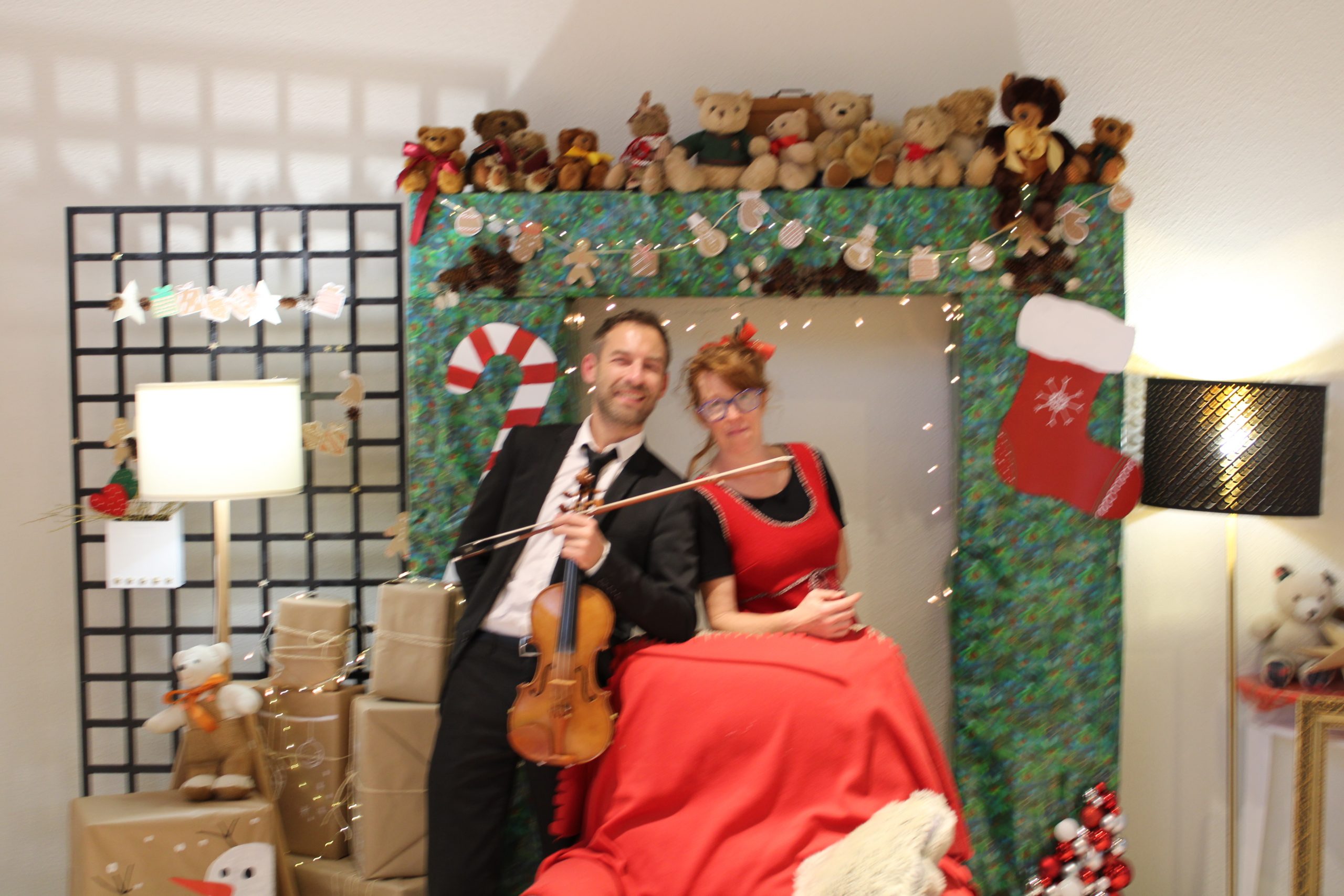 Puis le marché de Noël avec le stand photos en famille, les bûches du chef et le violoniste itinérant
